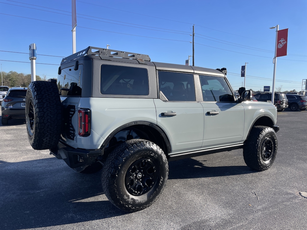 Cactus Gray 2023 Ford Bronco Wildtrak Lifted W/ After Market Wheels 4WD 10-Speed Automatic 2.7L EcoBoost V6 12" LCD Capacitive Touchscreen w/Swipe Capability, 360-Degree Camera, Additional Sound Deadening, Equipment Group 353A High Package, Front Parking Sensors, Information on Demand Panel, Sideview Mirrors. Key Pad, Remove able Hard Top